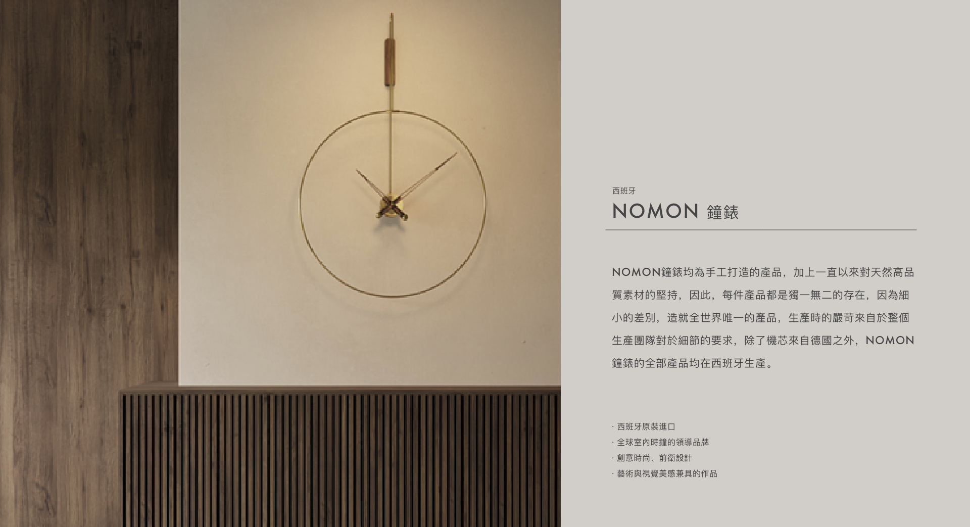 NOMON鐘錶均為手工打造的產品,加上一直以來對天然高品質素材的堅持,因此,每件產品都是獨一無二的存在,因為細小的差別,造就全世界唯一的產品,生產時的嚴苛來自於整個生產團隊對於細節的要求,除了機芯來自德國之外,NOMON鐘錶的全部產品均在西班牙生產。